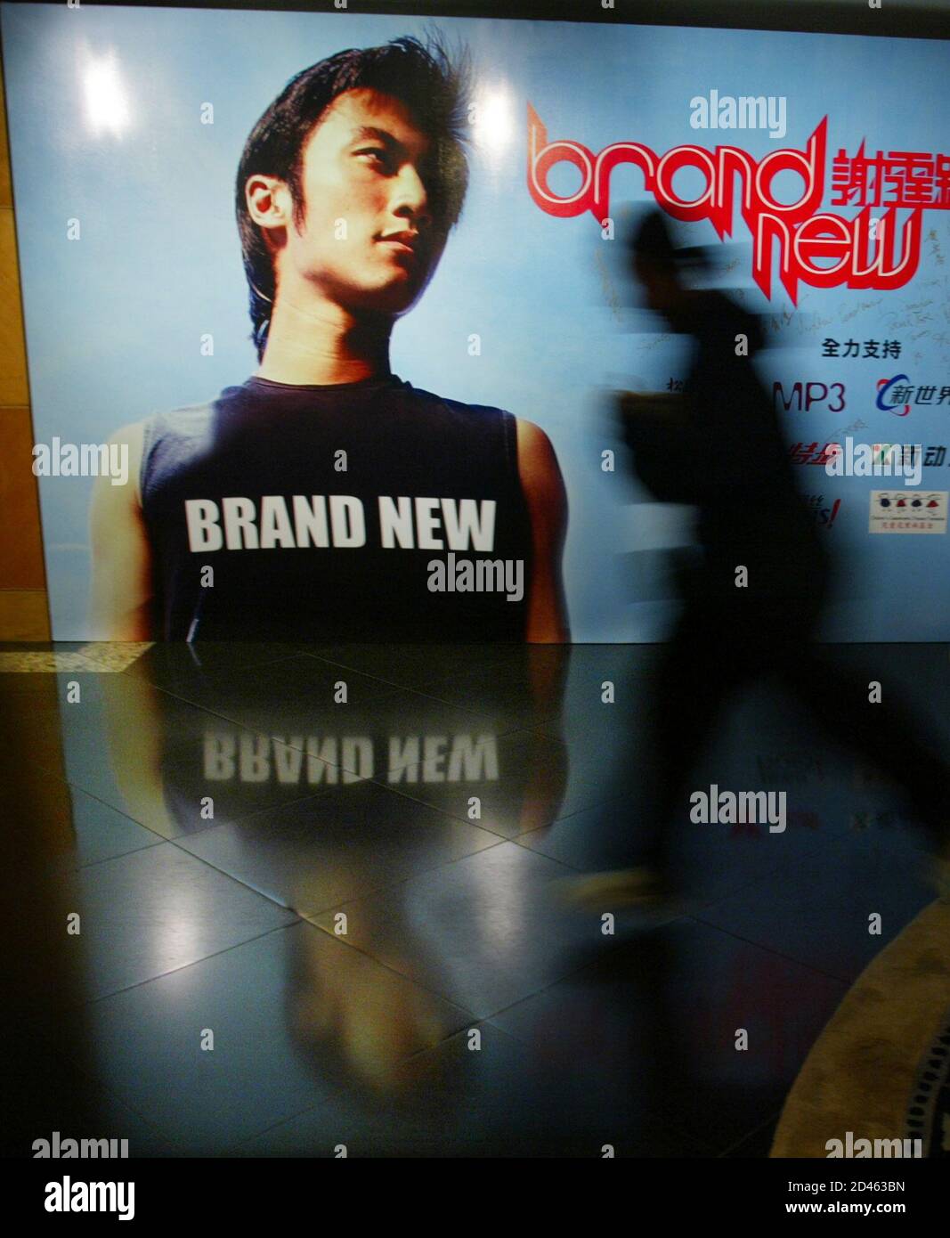 A Man Walks Past A Portrait Of Hong Kong Pop Star Nicholas Tse Before The Start Of A News Conference In Hong Kong March 12 2003 Tse Who Announced His Return To